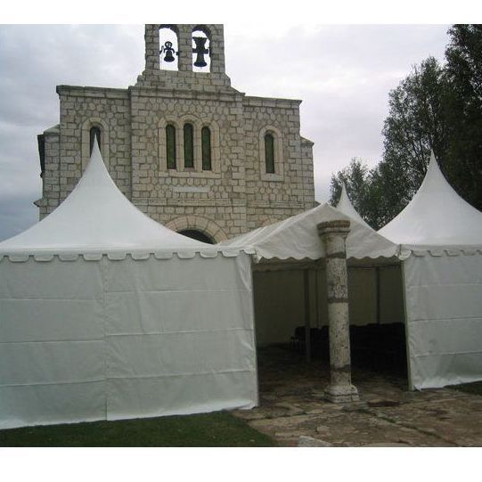 Medidas: 3x3 x 3,20 metrosMateriales: lona blanca y aluminio reforzadoTiempo de montaje: 30 minutosUsos: vestuarios, barras cubiertas, almacén...