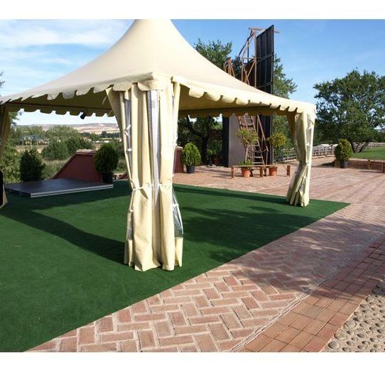 Medidas: 5x5 x 5 metros Materiales: lona blanca, aluminio reforzado y plástico transparente en la ventana. Tiempo de montaje: 50 minutos Usos: