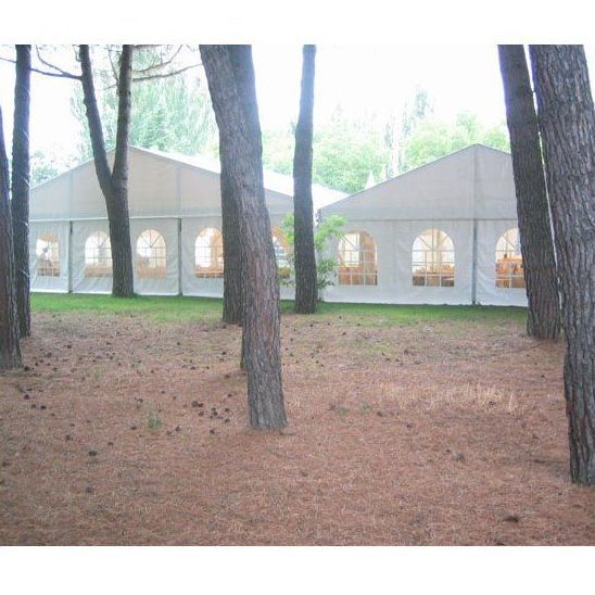 Medidas: 15 x ilimitado x 5,65 / 6,65 metros Materiales: lona blanca, aluminio reforzado y plástico transparente en la ventana. Tiempo de montaje: